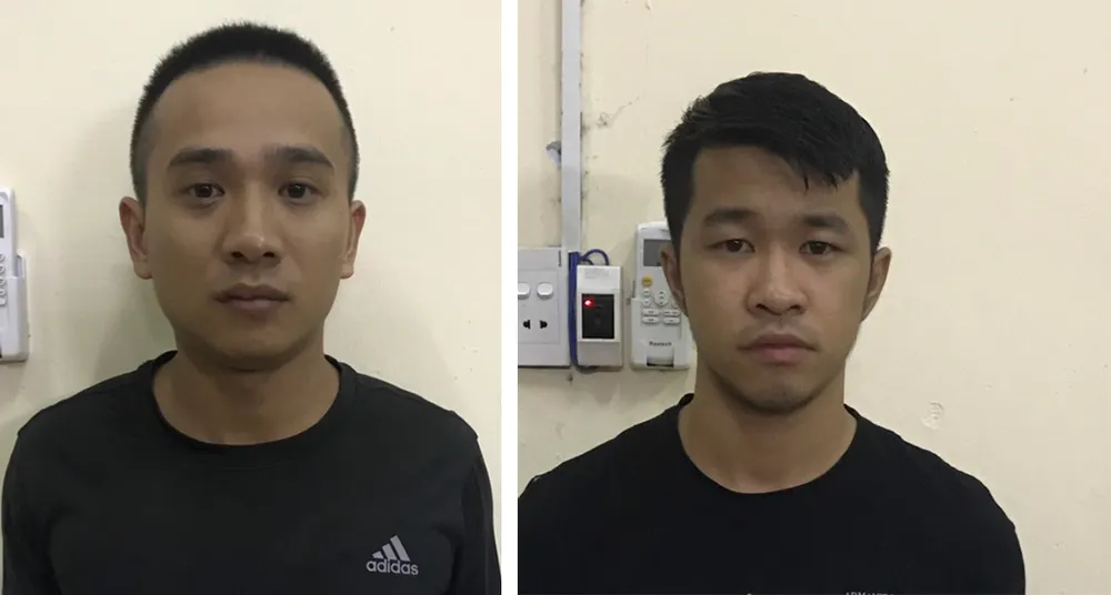 Thành (bên phải) cùng Cường tại cơ quan điều tra. Ảnh: HT