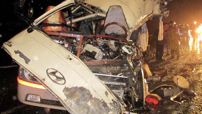 Trước đó, 20 giờ ngày 10-2, trên quốc lộ 1A đoạn qua thị trấn Phong Điền, huyện Phong Điền (Thừa Thiên – Huế) xe khách biển số 47B-00575 do tài xế Nguyễn Văn Nam điều khiển chở 18 hành khách lưu thông hướng Nam- Bắc đã lấn đường đâm trực diện với xe khách 16 chỗ 75K-4977 lưu thông theo hướng ngược lại.
