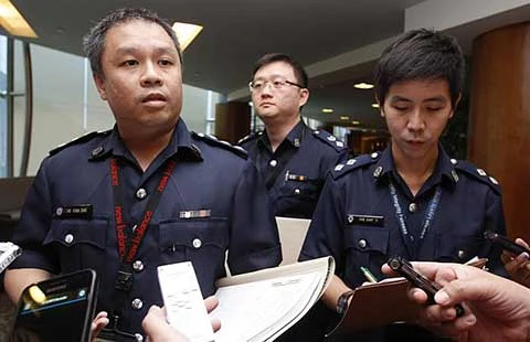 Lực lượng cảnh sát Singapore làm nhiệm vụ đang trả lời phỏng vấn truyền thông. Ảnh: STT