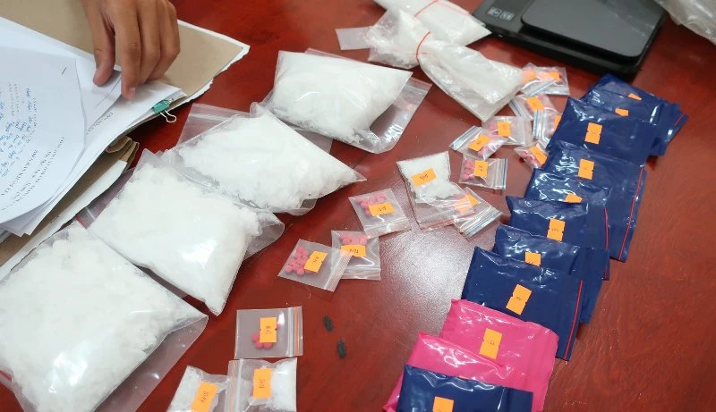 Tang vật thu giữ trên xe của Linh gồm có 1,5 kg ma túy đá và 3.000 viên ma túy tổng hợp, 2 điện thoại dùng để giao dịch mua bán ma túy…