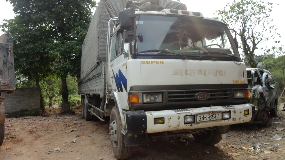 Chiếc xe tải mang biển số 34K-6517 đang bị tạm giữ tại Công an huyện Cẩm Xuyên. Ảnh: Tr. Hưng.