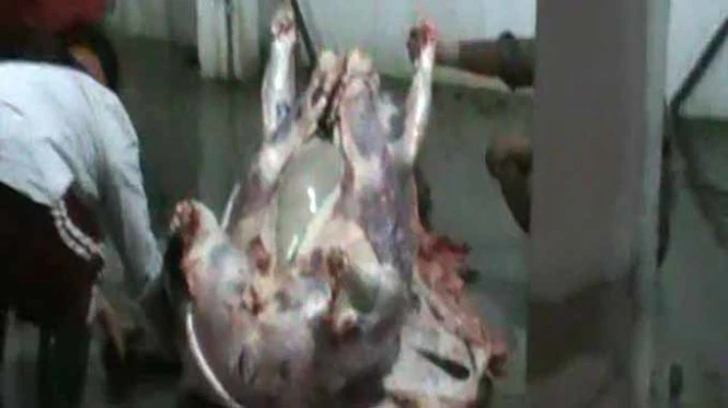 Theo công an, sau khi lấy tiết bò xong, những người này dùng vòi nước có áp suất cao đầu gắn kim tiêm bơm nước giếng khoan vào tĩnh mạch và các bộ phận khác của bò thịt.