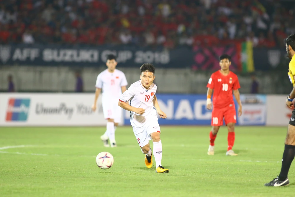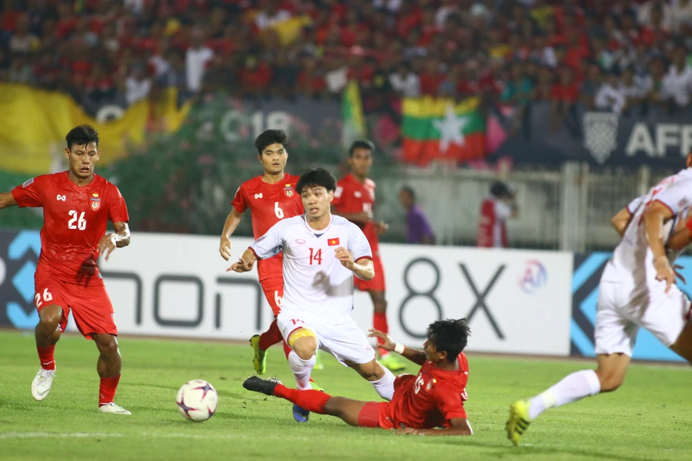 Những pha đi bóng của Công Phượng khiến hàng thủ Myanmar vất vả chống đỡ.