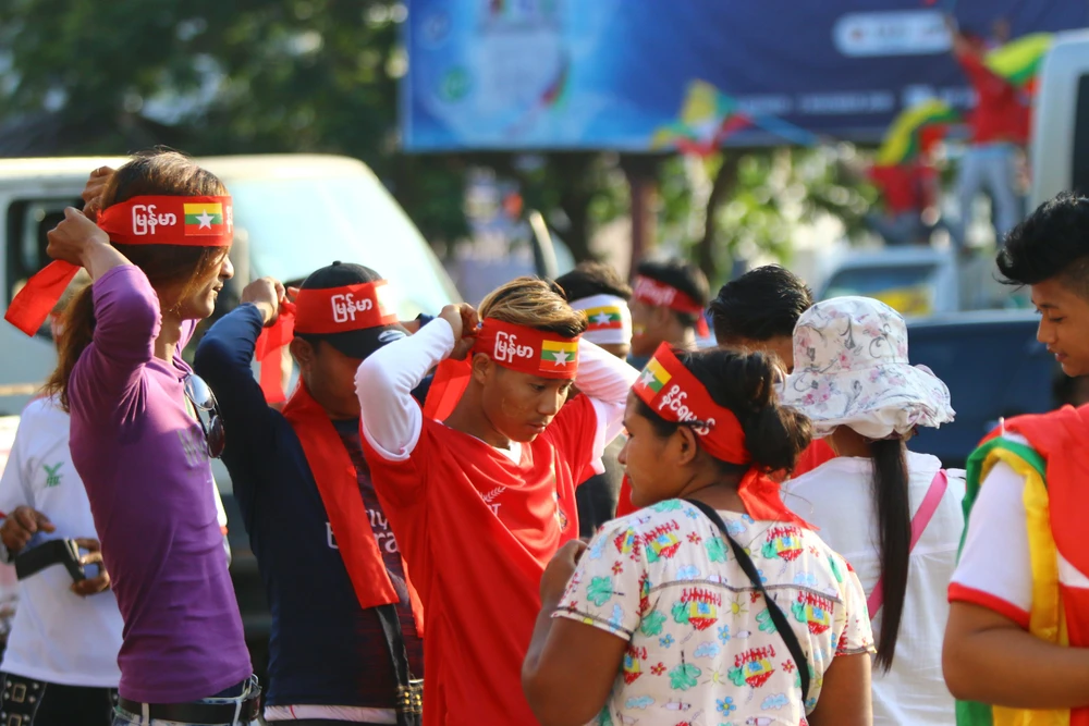 Chùm ảnh CĐV Việt Nam và Myamar trước sân Thuwunna: