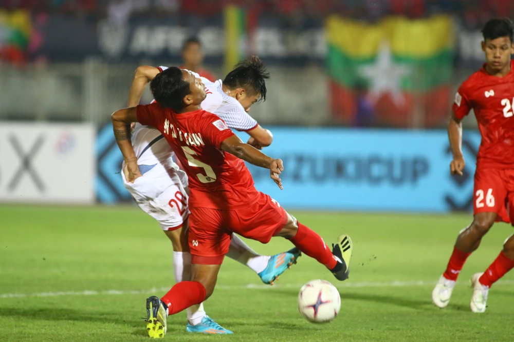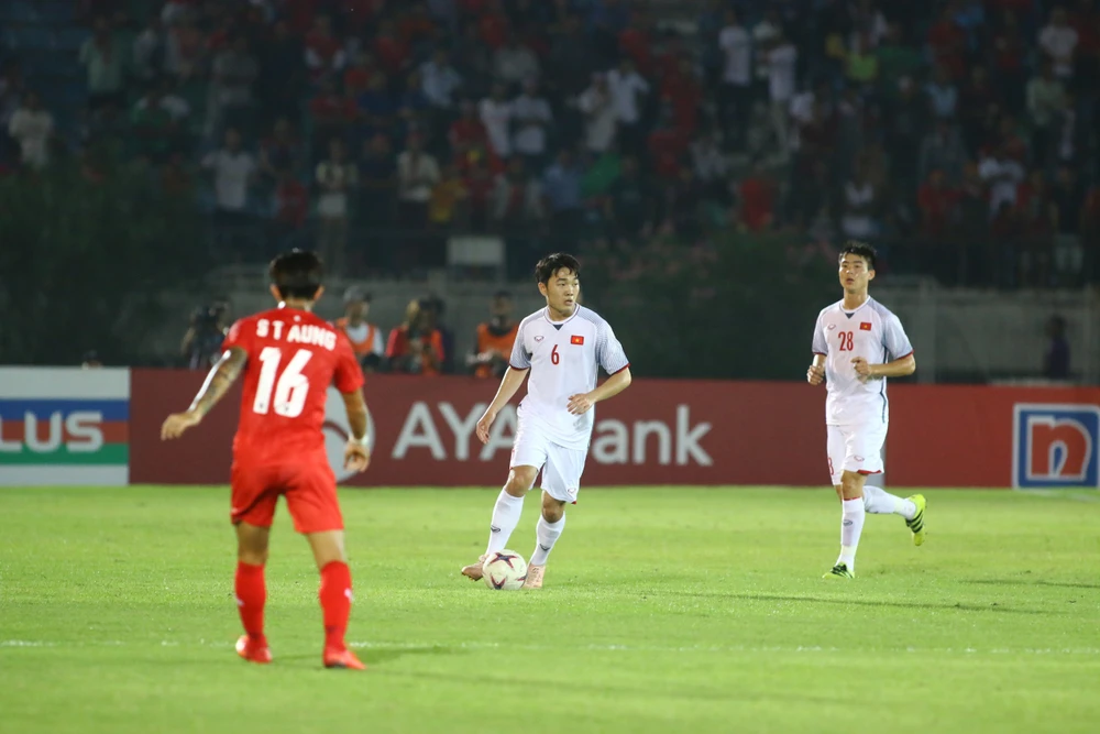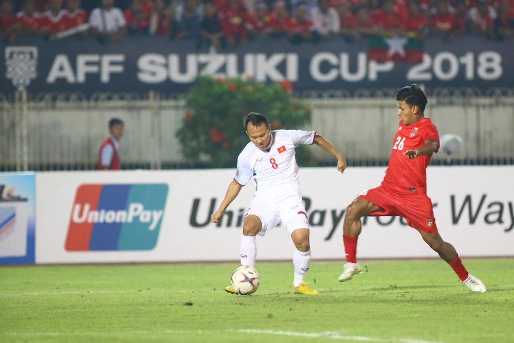 Phút 47, Aung Thu đã có pha dứt điểm cận thành trong vòng cấm nhưng hậu vệ Việt Nam đã kịp theo sát cản phá.