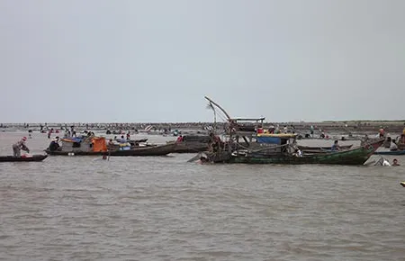 Rừng người tham gia cướp nghêu tại HTX Thủy sản Đồng Tâm. Ảnh: H.NAM