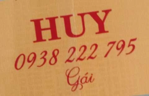 Nhằm “quảng cáo thương hiệu” lôi kéo khách hàng Huy chủ động in danh thiếp với chữ “Gái” kèm tên, số điện thoại tiện cho việc liên hệ. Những danh thiếp đặc biệt này đã được cảnh sát phát hiện, thu giữ khi khám xét trên người Huy.