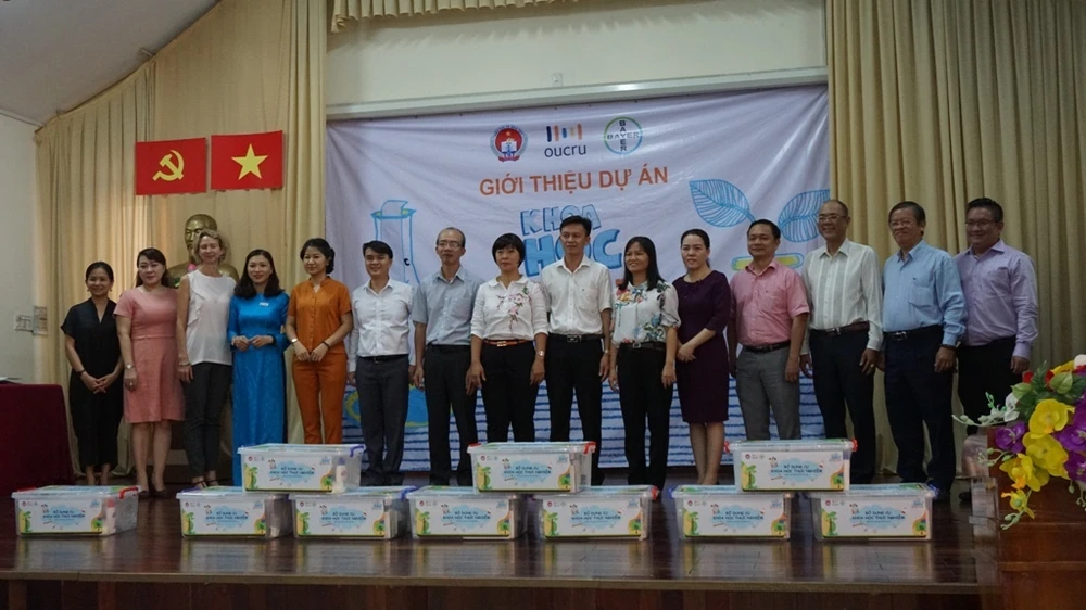Sở GD&ĐT TP.HCM cùng các đơn vị phối hợp thực hiện dự án trao tặng 10 bộ đồ dùng thí nghiệm cho các trường tham gia dự án. Ảnh: NGUYỄN QUYÊN