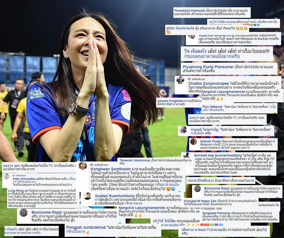 Và bà Lamsam buộc phải lên tiếng giải thích tường tận: “Với Thai Port, một CLB lớn mạnh, giàu có sẵn sàng đáp ứng mọi con người, ngoại binh giỏi để CLB hùng mạnh lên, Thai Port luôn trăn trở và muốn khẳng định mình không chỉ ở Thái Lan và trên trường quốc tế, cụ thể là AFC Champions League. Nhưng ở vòng sơ loại Champions League, Thai Port thua ngay trên sân nhà trước Ceres Negros của Philippines 0-1 và bị loại là điều khó có thể chấp nhận. Đã vậy ở League Cup vòng đầu cũng thua Chiang Rai 0-2 cũng không thể chấp nhận được.