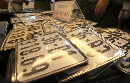 Hàng chục biển kiểm soát bị nhóm tội phạm trộm cắp bị lực lượng công an thu giữ. Ảnh: ĐẶNG TRUNG