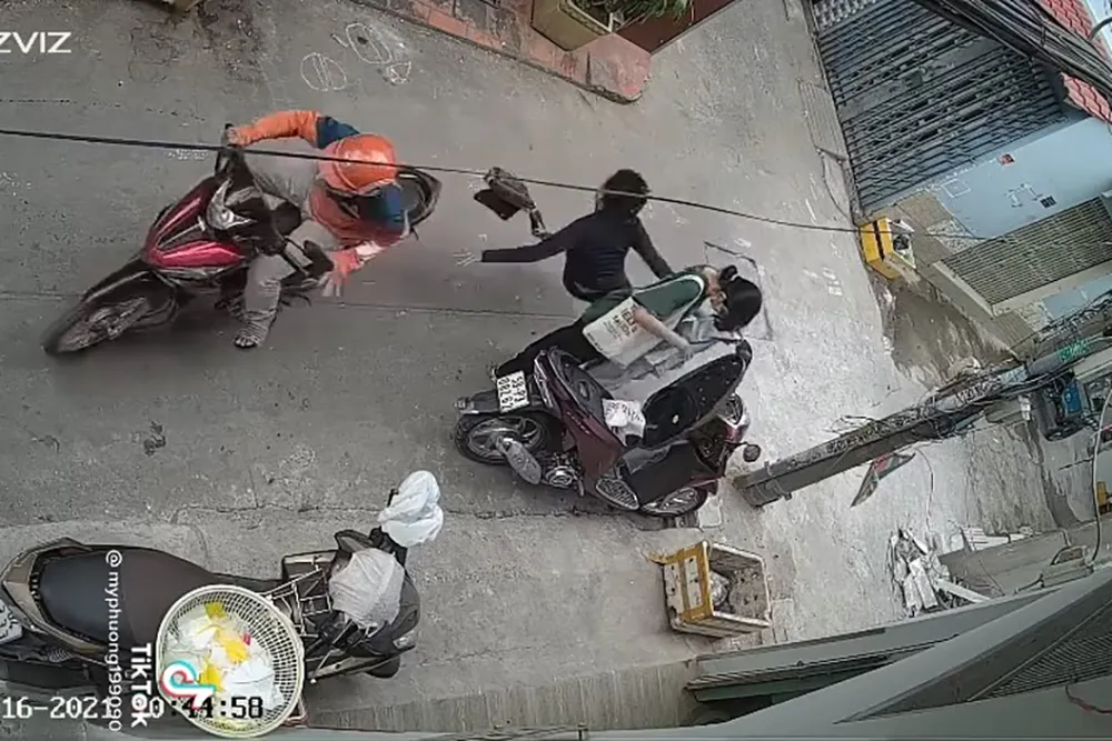 Cú giật khiến người phụ nữ ngã về phía sau, tay và chân kịp chống xuống đường nên phần đầu không bị thương tích. Riêng Nhung do cướp giật không thành nên rú ga tháo chạy.