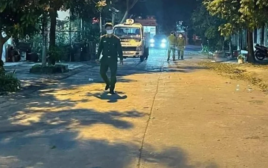 Đêm 27-3, Công an tỉnh Ninh Bình phong tỏa hiện trường điều tra vụ án giết người dã man xảy ra trên địa bàn. Ảnh: Người dân cung cấp