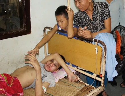 Cháu Tú được đưa đến BV Hữu nghị Đa khoa tỉnh Nghệ An cấp cứu lúc chiều 16-9, trong tình trạng, nhiều vết thương khắp cơ thể, tinh thần hoảng loạn, trí não không bình thường. Trên người cháu Tú bị loét hậu môn, dương vật tụ máu. Trên mặt, ngực và tay chân người nhiều nơi lở loét, có dấu hiệu như bị lạm dụng tình dục.