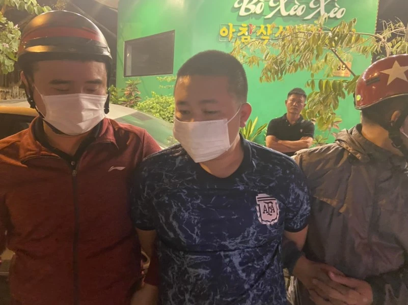 Nguyễn Minh Tuấn (giữa) bị bắt giữ.