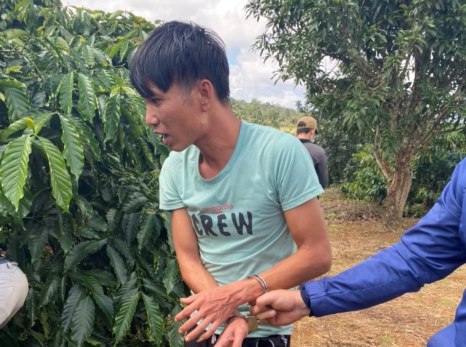 Hiến bị bắt khi đang lẩn trốn gần bìa rừng tại Đăk Nông. Ảnh: CACC