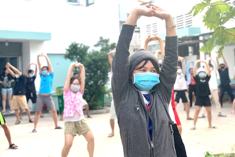 Anh Mỹ chia sẻ: “Khi vào đây điều trị, lần đầu tiên mình được tiếp cận các phương pháp điều trị theo Đông y như sử dụng thuốc thảo dược mỗi ngày, mỗi ngày mình được cho xông tinh dầu sả hai cữ sáng và chiều. Những ngày đầu, khi xông tinh dầu mình cảm thấy rất khó chịu và rát nhưng sau vài lần xông thì mình thấy tình trạng nghẹt mũi và ho cải thiện nhiều. Mỗi khi tập dưỡng sinh, dù là những bài tập đơn giản thôi nhưng cũng khiến mình ho sặc sụa, cho thấy đường hô hấp của mình đang bị viêm và hô hấp khó khăn. Tập dưỡng sinh đều đặn mình thấy lồng ngực và phổi cũng thông thoáng hơn. Bên cạnh đó, không gian cách ly điều trị cũng thông thoáng, thoải mái đi lại, có mạng WiFi để làm việc nên tâm lý mình cũng thoải mái rất nhiều”.