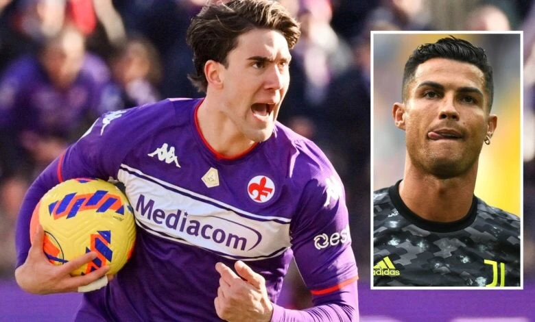 Vlahovic đã san bằng kỷ lục của đàn anh Ronaldo và còn một trận nữa để vượt qua. Ảnh: CGI.