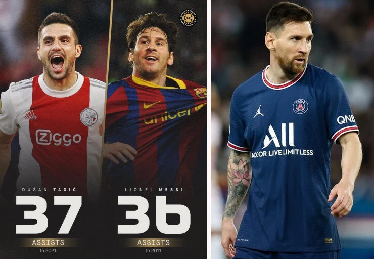 Và pha kiến tạo mới nhất của Tadic đã chứng kiến anh làm lu mờ kỷ lục mà Messi đã lập trong năm 2011 tuyệt đẹp của mình, với việc ghi 73 bàn trong 60 trận và kiến tạo 36 bàn khác cho đồng đội.