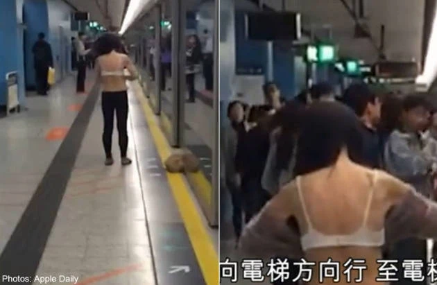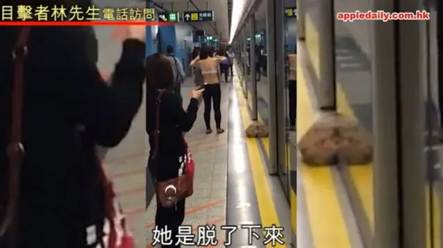 Trong một video được đăng trên hãng tin Apple Daily, người phụ nữ cởi đồ giữa sân ga cứ như thể đang ở trong phòng thay đồ riêng của mình.