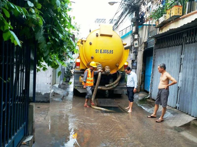Sau khi nhận được thông tin về tình trạng ngập úng kéo dài ở khu vực trên, chiều ngày 6-10, Công ty Thoát nước đô thị phải đưa 20 công nhân cùng một xe chuyên dụng hút nước, thông cống liên tục nhiều tiếng đồng hồ nhưng nước vẫn không thoát hết.