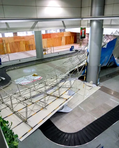 Hiện trường vụ sập giàn giáo tại nhà ga sân bay Tân Sơn Nhất. Ảnh: VNExpress