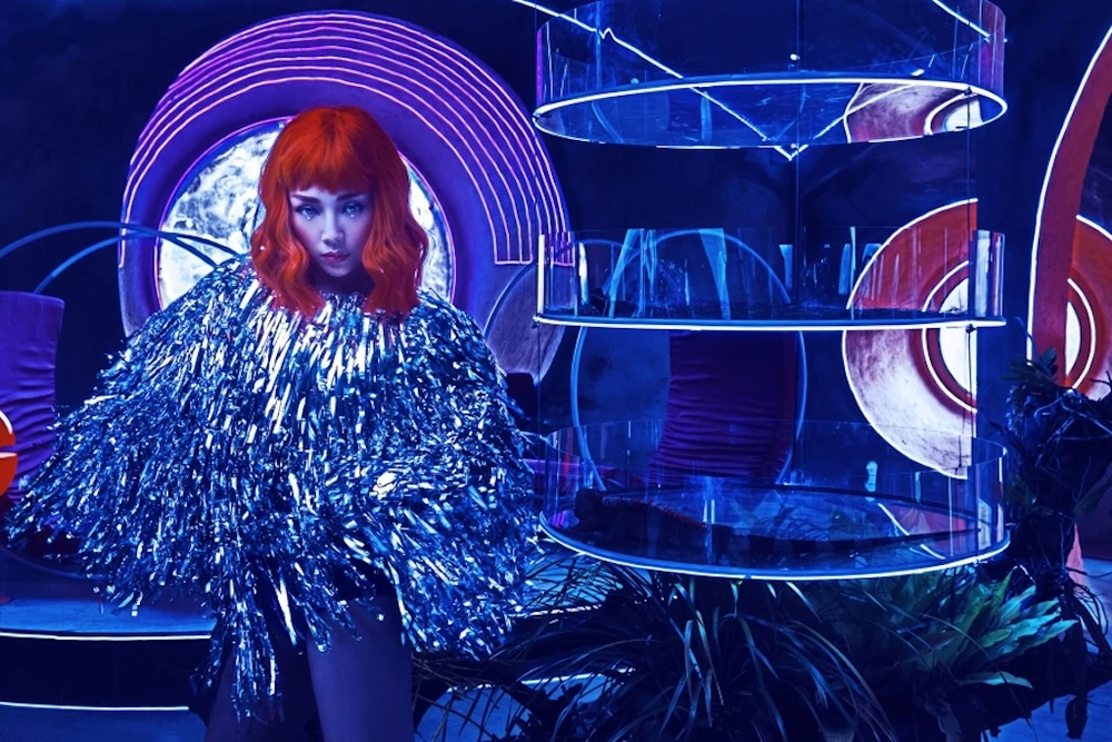 Trong tạo hình tóc đỏ của mình, Tóc Tiên đã bắt tay với stylist Kelbin Lei với trang phục mang phong cách sci-fi (khoa học viễn tưởng) của hai nhà thiết kế Hà Nhật Tiến và Đắc Thắng.