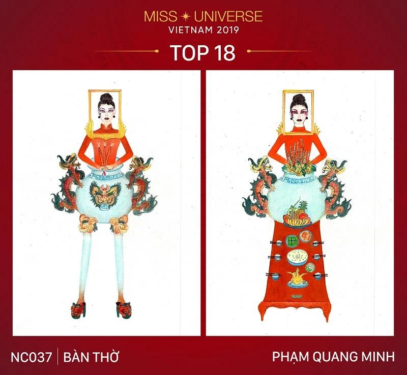 Điều bất ngờ là trang phục Bàn thờ dù đã từng gây tranh cãi dữ dội vẫn lọt top 5 bài thi được khán giả bình chọn. Sau đây là 5 bài thi do khán giả bình chọn.