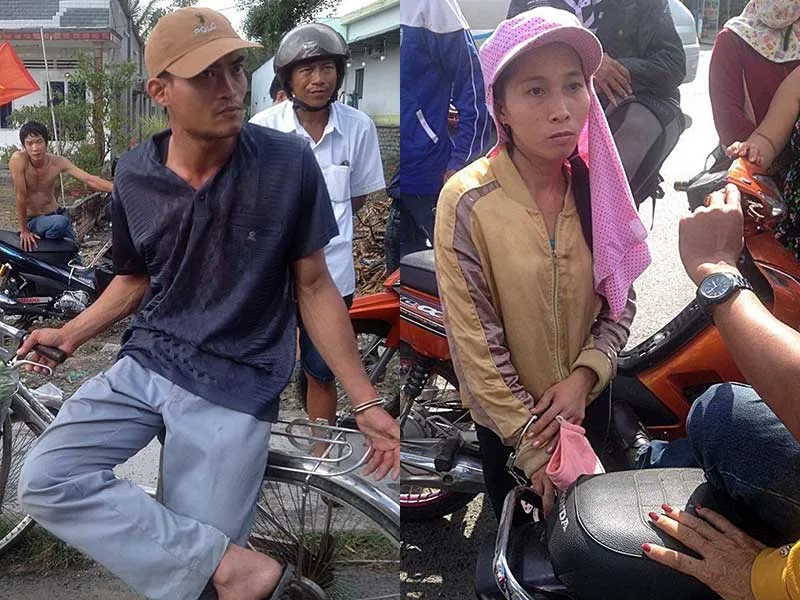 Hình ảnh vợ chồng anh Hoài bị còng tay đưa lên mạng Facebook khi bị bắt. Ảnh: PHƯƠNG NAM