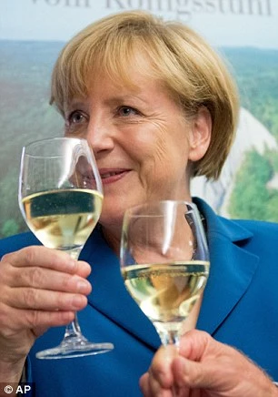 Bà Angela Merkel trong một buổi tiệc rượu tại Berlin, tháng 9-2013. Theo ông Stoltenberg, thức uống yêu thích của bà là vang trắng (Ảnh: AP)