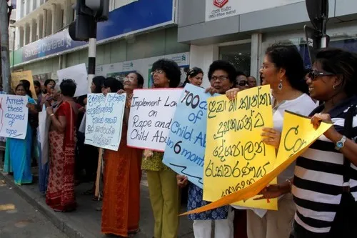 Lực lượng an ninh ở Sri Lanka có những hình thức trừng trị nghiêm minh đối với loại tội phạm này. Tuy nhiên, kể từ sau chiến tranh thế giới, tệ nạn này vẫn không ngừng gia tăng. Theo nghiên cứu đa quốc gia của liên hợp quốc về nam giới và bạo lực, có đến 14.5% đàn ông đã từng có hành vi hiếp dâm. Trong đó, 4.9% đã từng bị hiếp dâm, 2.7% hiếp dâm người khác và 1.6% tham gia vào các vụ cưỡng hiếp tập thể. Nhưng chỉ có 3.5% trong những người đã thực hiện hành vi này chịu sự trừng phạt của pháp luật. Hầu hết trong số những người này đều không cảm thấy có lỗi với hành vi của mình.