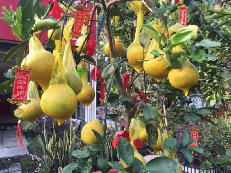 Cây bưởi Diễn sai quả, trái màu vàng... trưng được hết tháng giêng