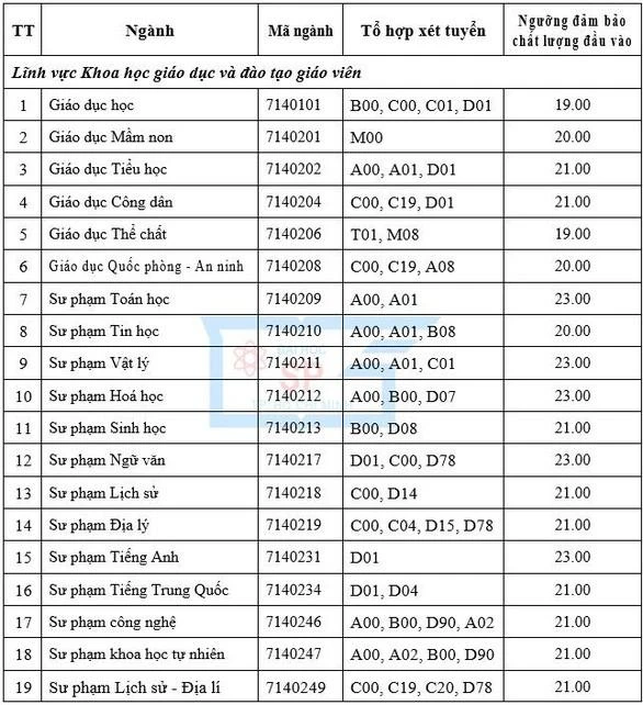 Các ngành có ngưỡng đầu vào 17 điểm, gồm Quản lý giáo dục; Công nghệ thông tin (chất lượng cao).