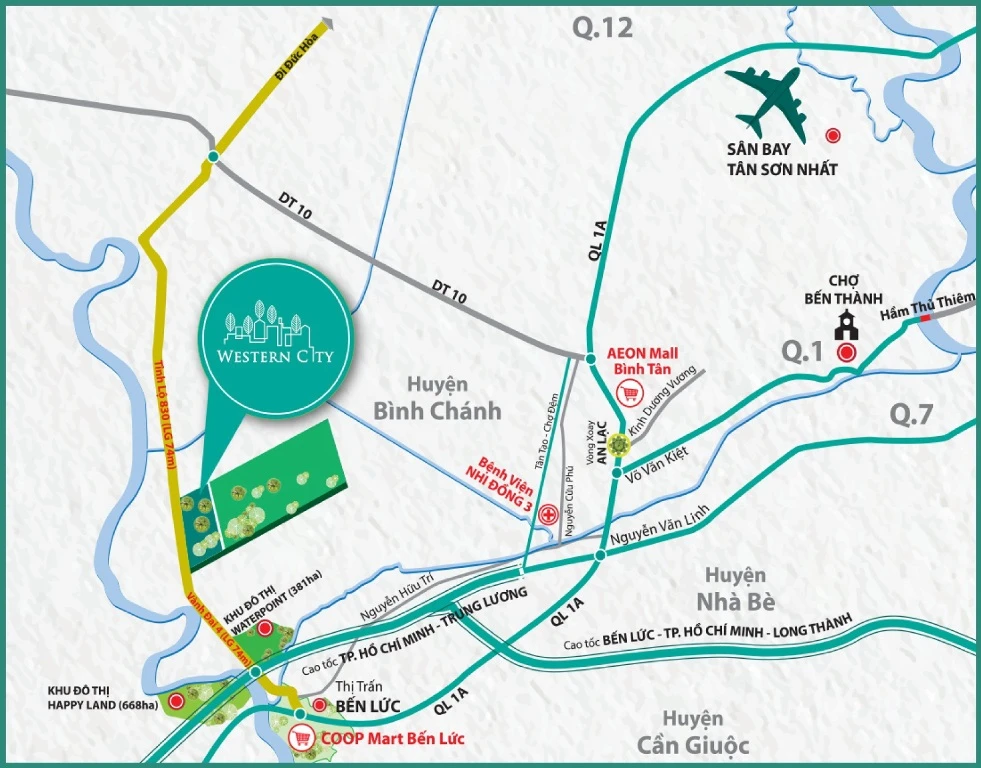 Nằm trên mặt tiền TL 830, liền kề cao tốc TP.HCM-Trung Lương, từ Western City cư dân dễ dàng kết nối đến TP.HCM.