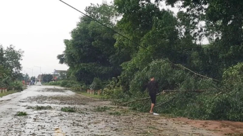 Lốc xoáy kèm mưa đá làm đổ cây xanh ở huyện Nghĩa Đàn, Nghệ An.