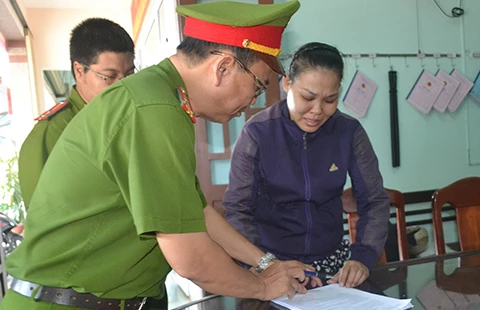 Trần Thị Kim Châu tại cơ quan công an. Ảnh: TT
