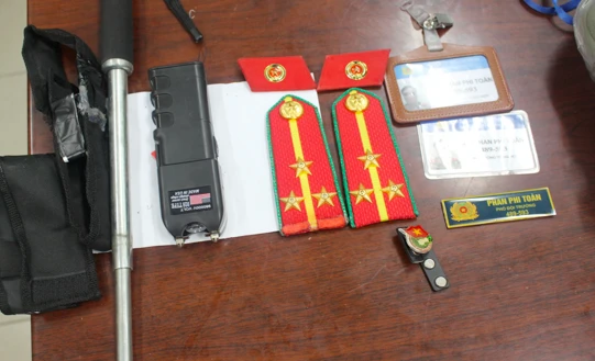 Khám xét nơi ở của Toàn, công an thu giữ một bộ trang phục của lực lượng An ninh nhân dân với cấp hàm Thượng uý, bảng tên chức vụ Phó đội trưởng và Phó phòng tổng hợp Công an quận 3. Ngoài ra, công an còn thu giữ nhiều công cụ hỗ trợ khác, một xe máy Toàn thường sử dụng.