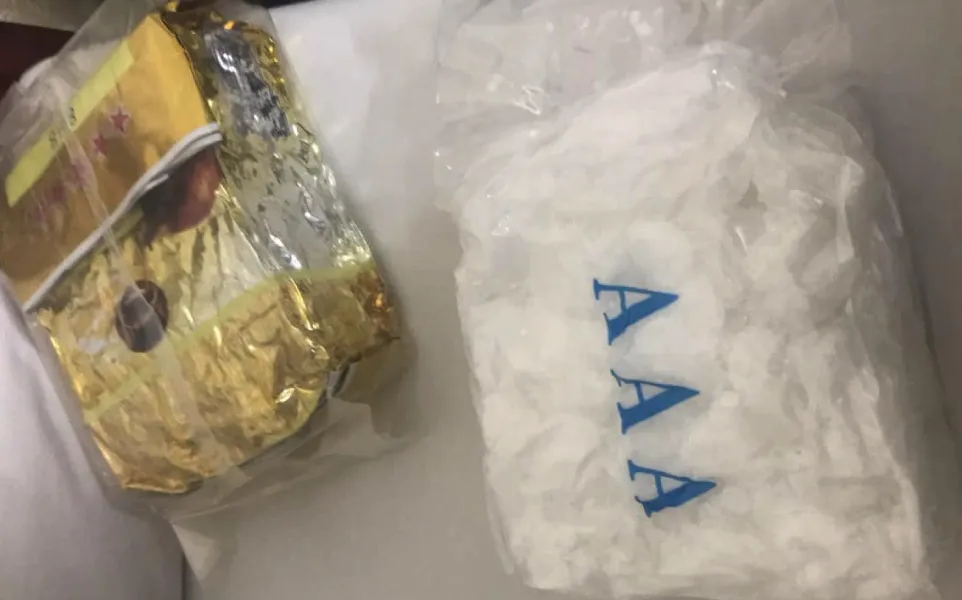 Trần Thị Thương bị bắt quả tang cùng tang vật ma túy đá. Ảnh: NTV.