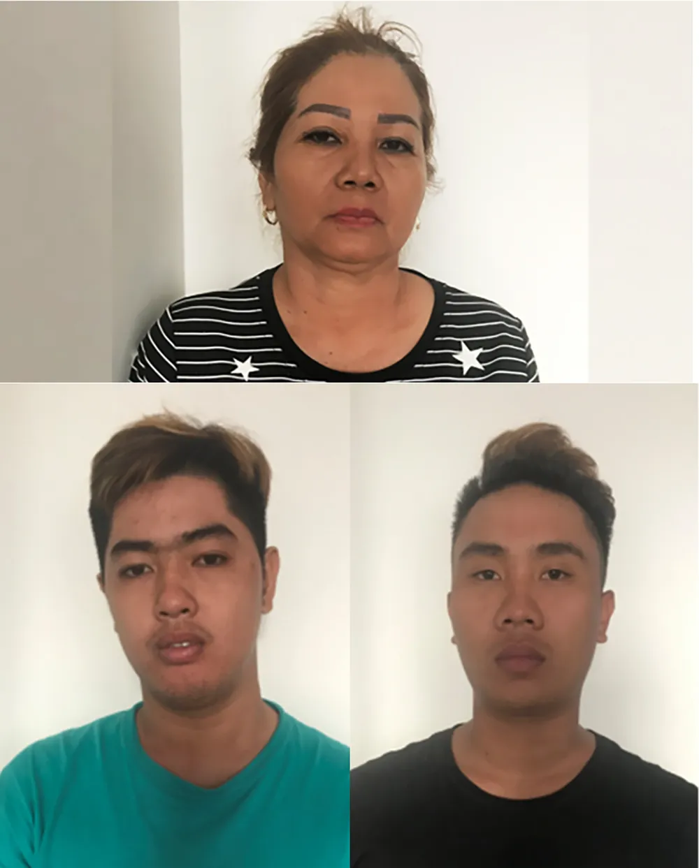 Bà Hạnh (trên cùng) và Danh, Bảo hiện đang bị Công an quận 3 tạm giữ để điều tra. Ảnh: HT