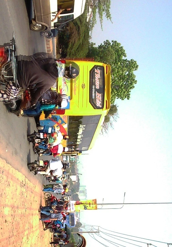 Hành khách đứng bên đường đón xe về tết.