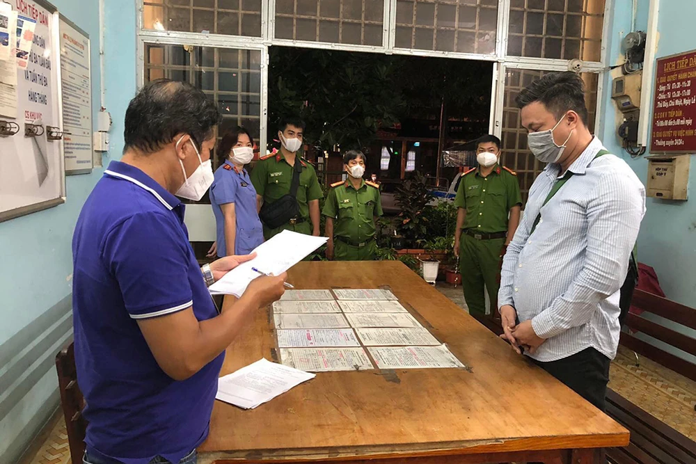 Công an đọc lệnh bắt Tâm. Ảnh: HT