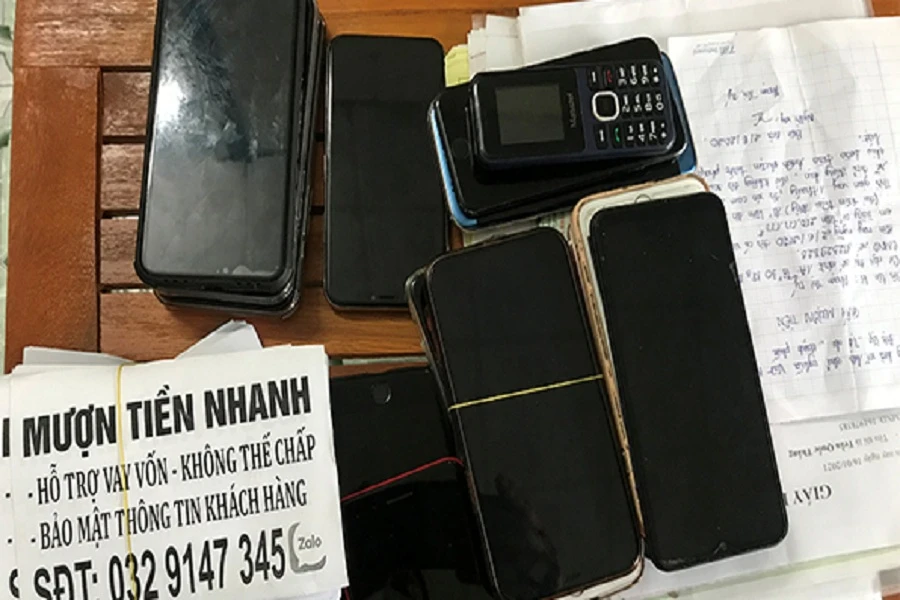 Tờ rơi, giấy vay tiền công an thu giữ. Ành: AX
