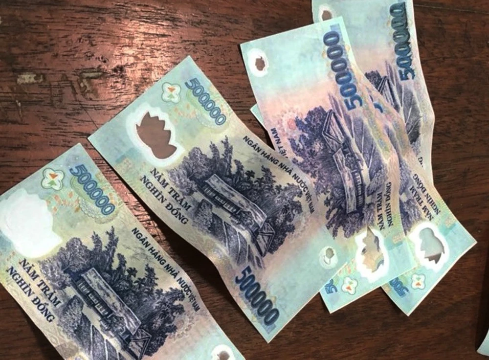 Các tờ tiền giả tang vật. Ảnh: C.A