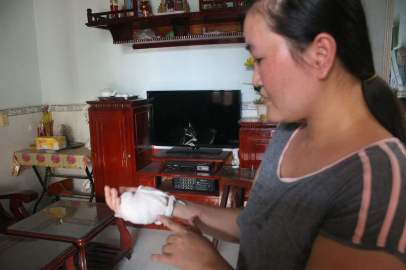 Con gái ông Tôn bị nhóm côn đồ chém bị thương ở tay khi giải cứu cho cha.