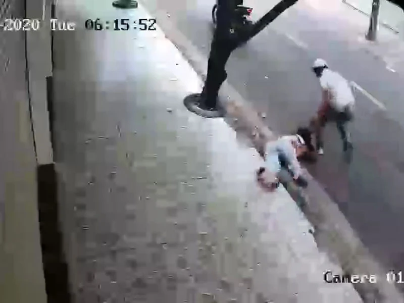 Camera an ninh ghi lại hình ảnh cướp giật, kéo lê nạn nhân. Ảnh: N.TÂN