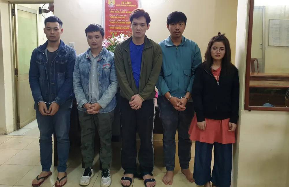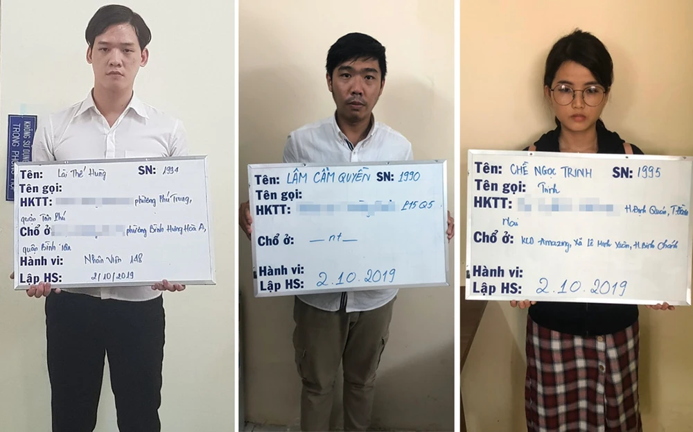 Năm người bị khởi tố, bắt giam gồm Tu Long (28 tuổi), Yuan Deng Hui (29 tuổi; quốc tịch Trung Quốc), Chề Ngọc Trinh (25 tuổi; quê quán Định Quán, Đồng Nai), Lâm Cảm Quyền (30 tuổi; ngụ quận 5, TP.HCM) và Lài Thế Hùng (26 tuổi; ngụ quận Bình Tân, TP.HCM).