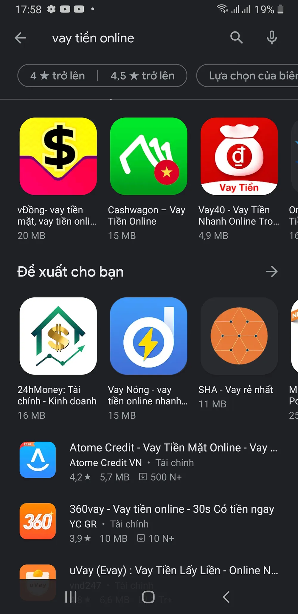 Trong lúc đó, hàng loạt app vay tiền vẫn tràn lan trên mạng. Ảnh chụp màn hình ngày 20-4.