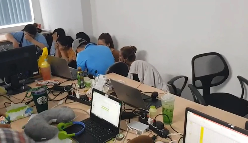 Nhóm người Trung Quốc đã thuê người Việt Nam để duy trì hoạt động của các app vay tiền, kể cả việc chửi bới, đòi nợ... Ảnh: CA
