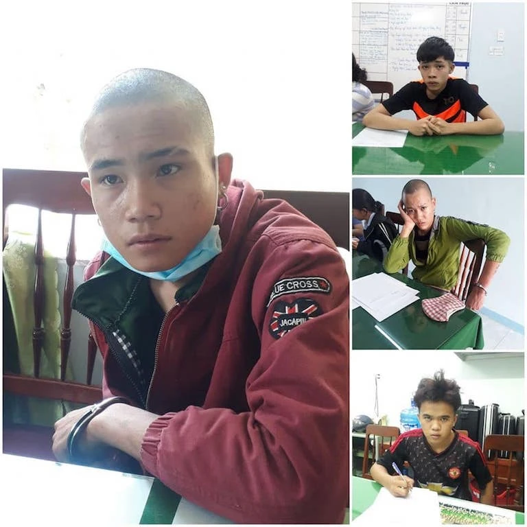 Bốn thủ phạm tại cơ quan công an. Ảnh: CA