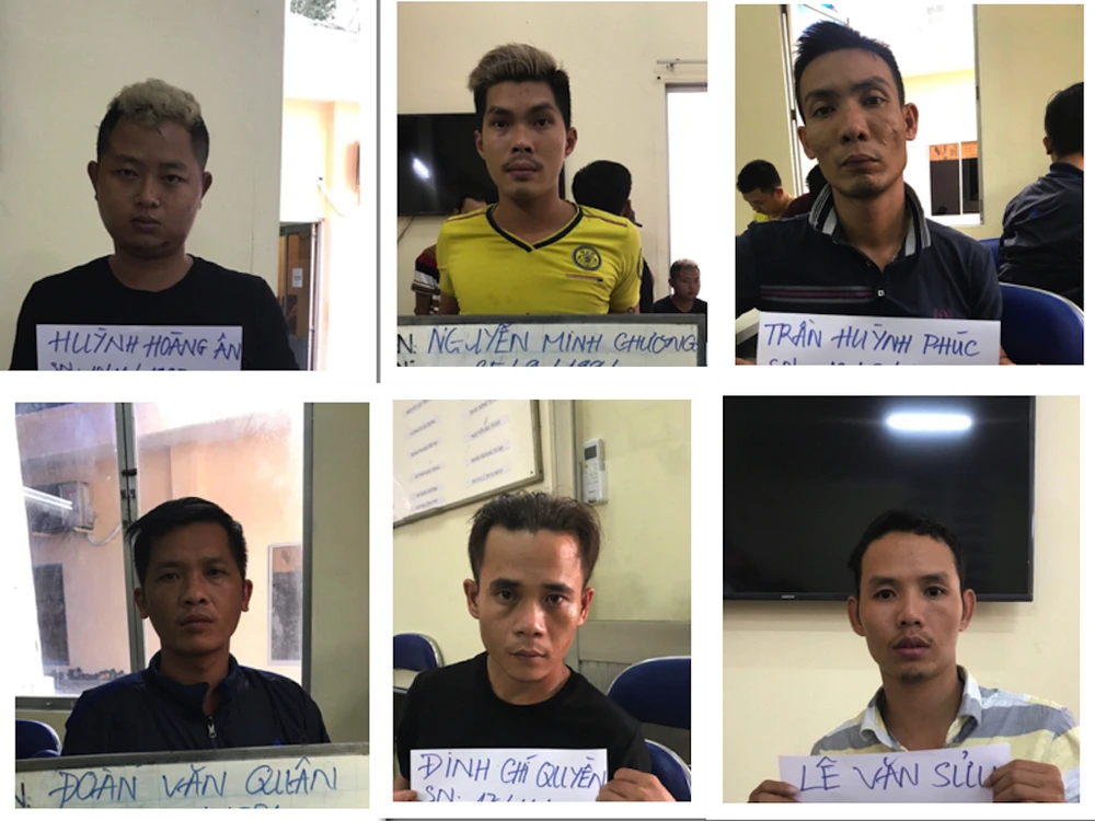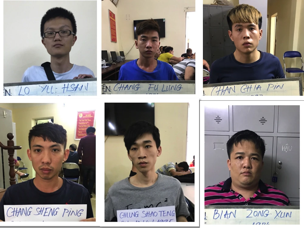 Nhóm đối tượng bị bắt giữ, gồm : Chung Shao Teng (23 tuổi); Chang Seng Ping (23 tuổi); Chang Chia Pin (21 tuổi); Lo Yo Hsan (20 tuổi); Bian Zong Xun; Chang Fu Lung (cùng là người Đài Loan); Trần Huỳnh Phúc (35 tuổi, trú quận Sơn Trà, Đà Nẵng); Lê Văn Sửu (33 tuổi, trú huyện Hương Sơn, Hà Tĩnh); Nguyễn Minh Chương (27 tuổi, trú huyện Gò Dầu, Tây Ninh); Đoàn Văn Quân (27 tuổi, trú huyện Trảng Bàng, Tây Ninh); Huỳnh Hoàng Ân (25 tuổi) và Đinh Chí Quyền (29 tuổi, cùng trú huyện Châu Thành, Tây Ninh).