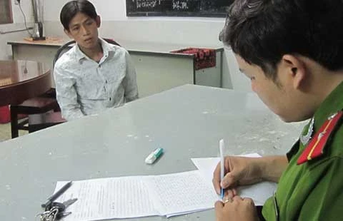 Điều tra viên đang lấy lời khai nghi can đòi nợ thuê, bắt giữ người trái pháp luật. Ảnh: CTV